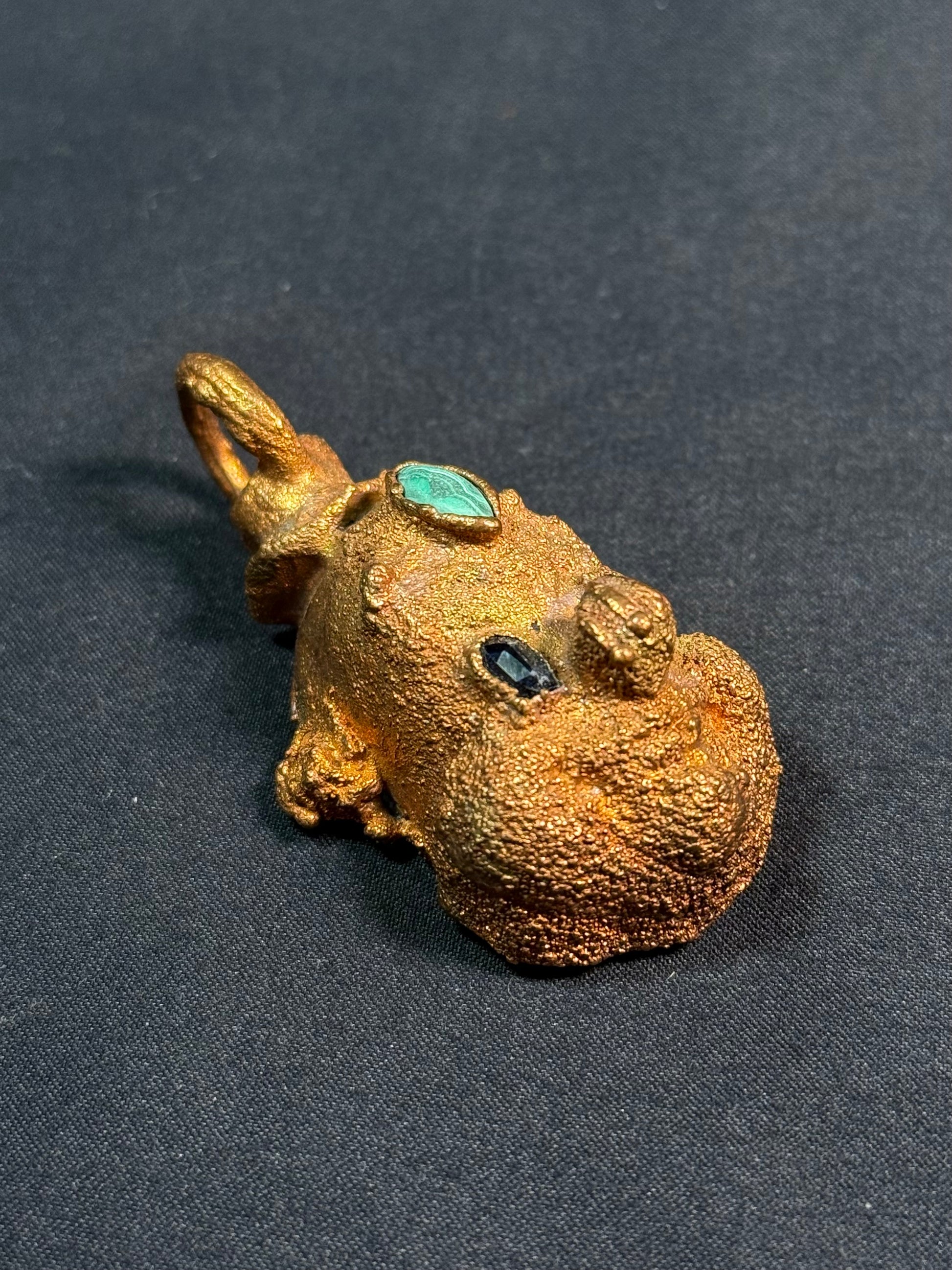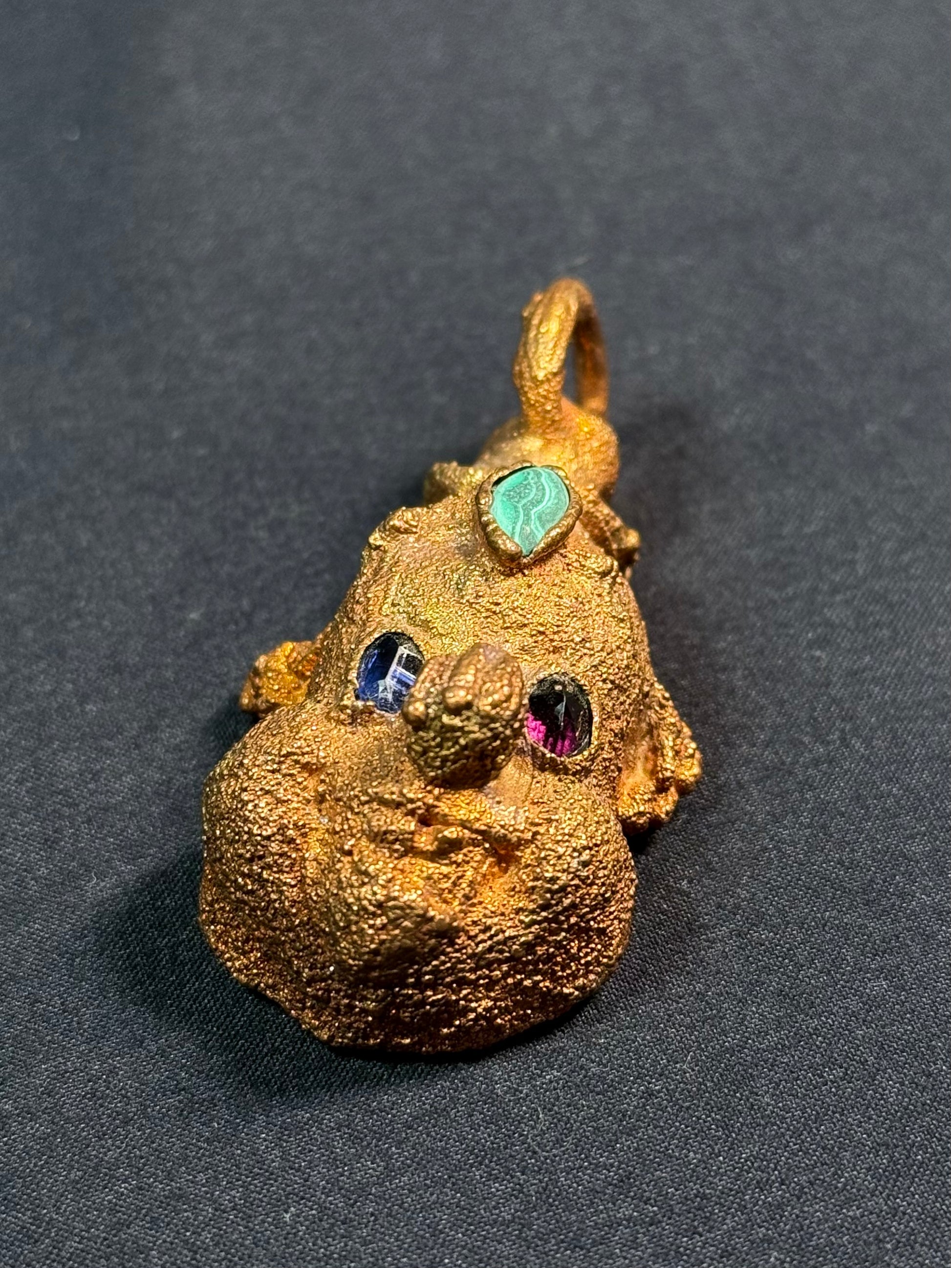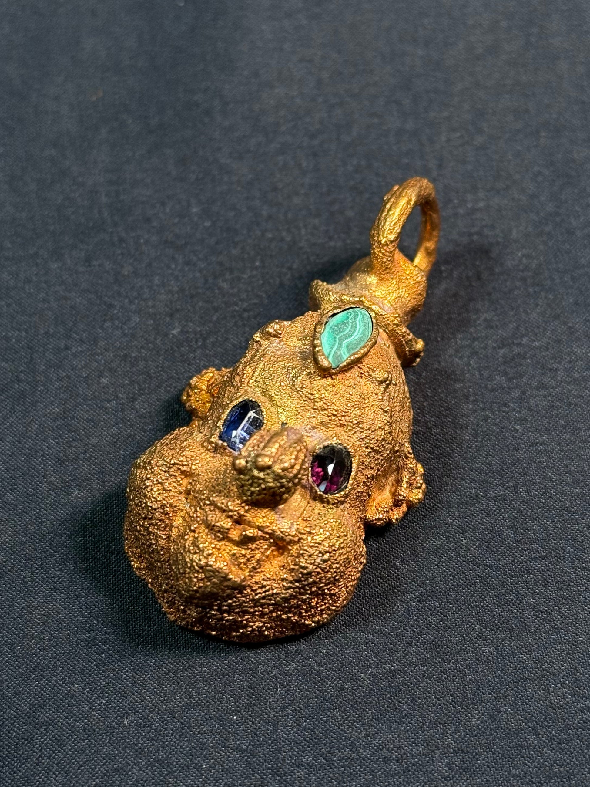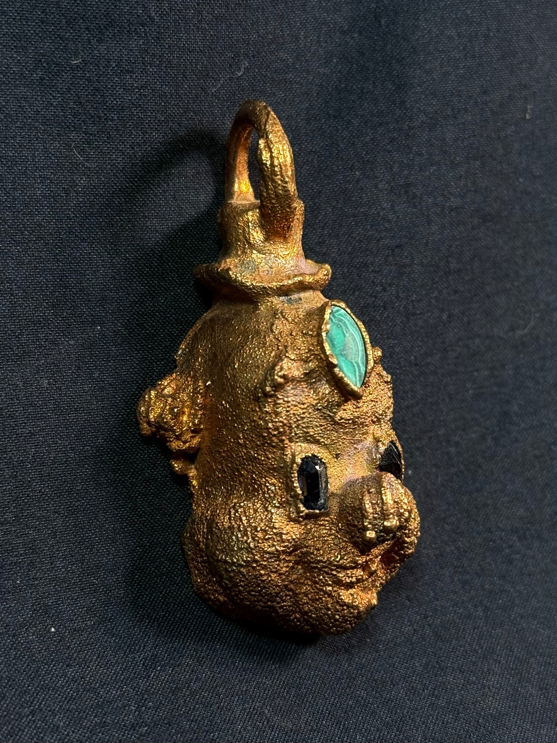 Electroform copper clown featuring garnet eyes and malachite third eye.