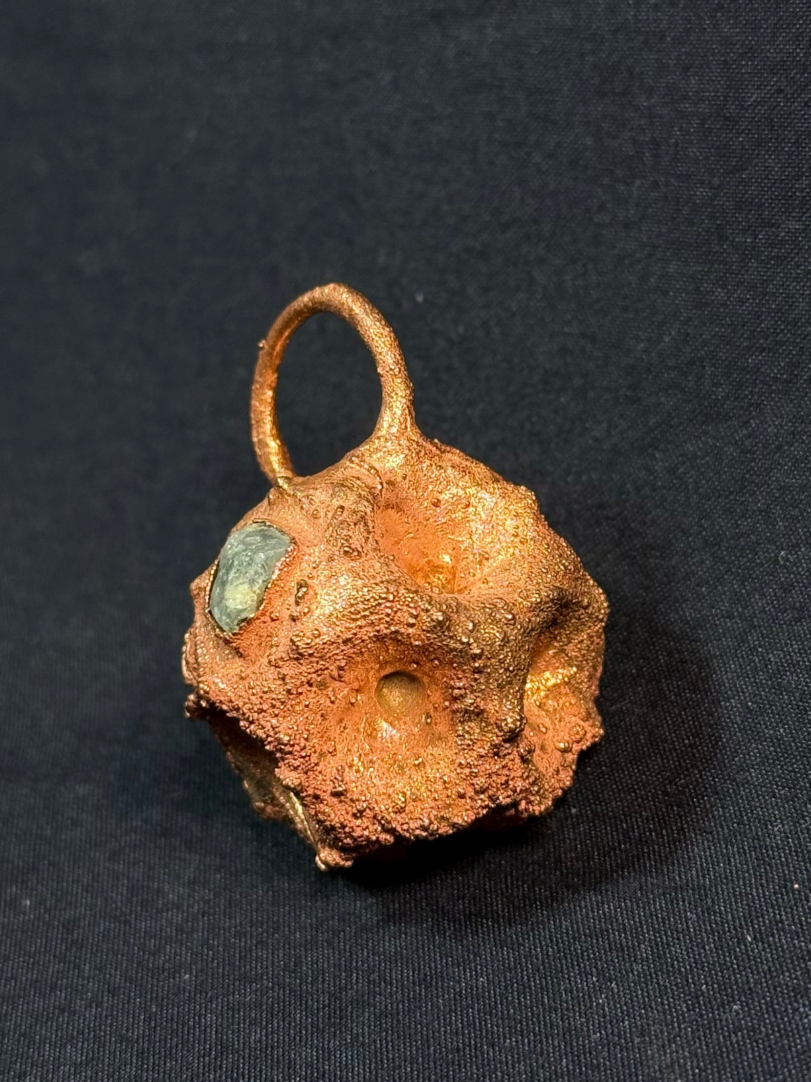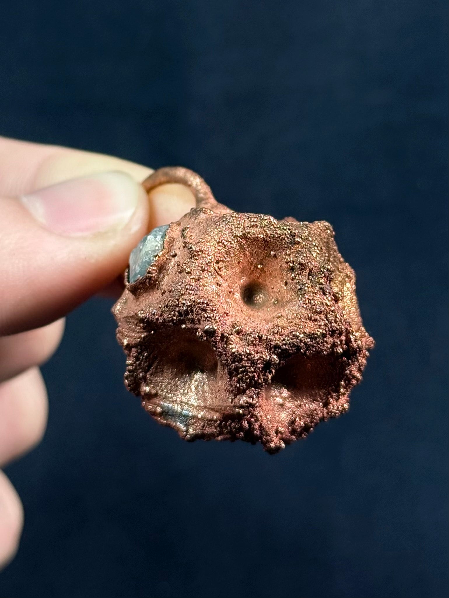 Electroform copper 3D printed tessellated rose (by the amazing @dabassmentdwellers) featuring aquamarine.