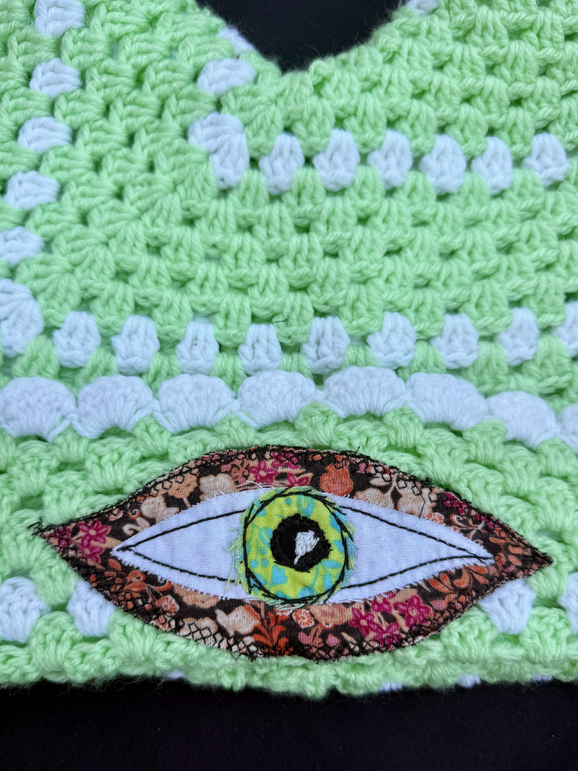 Eyeball patch created from scrap fabrics.