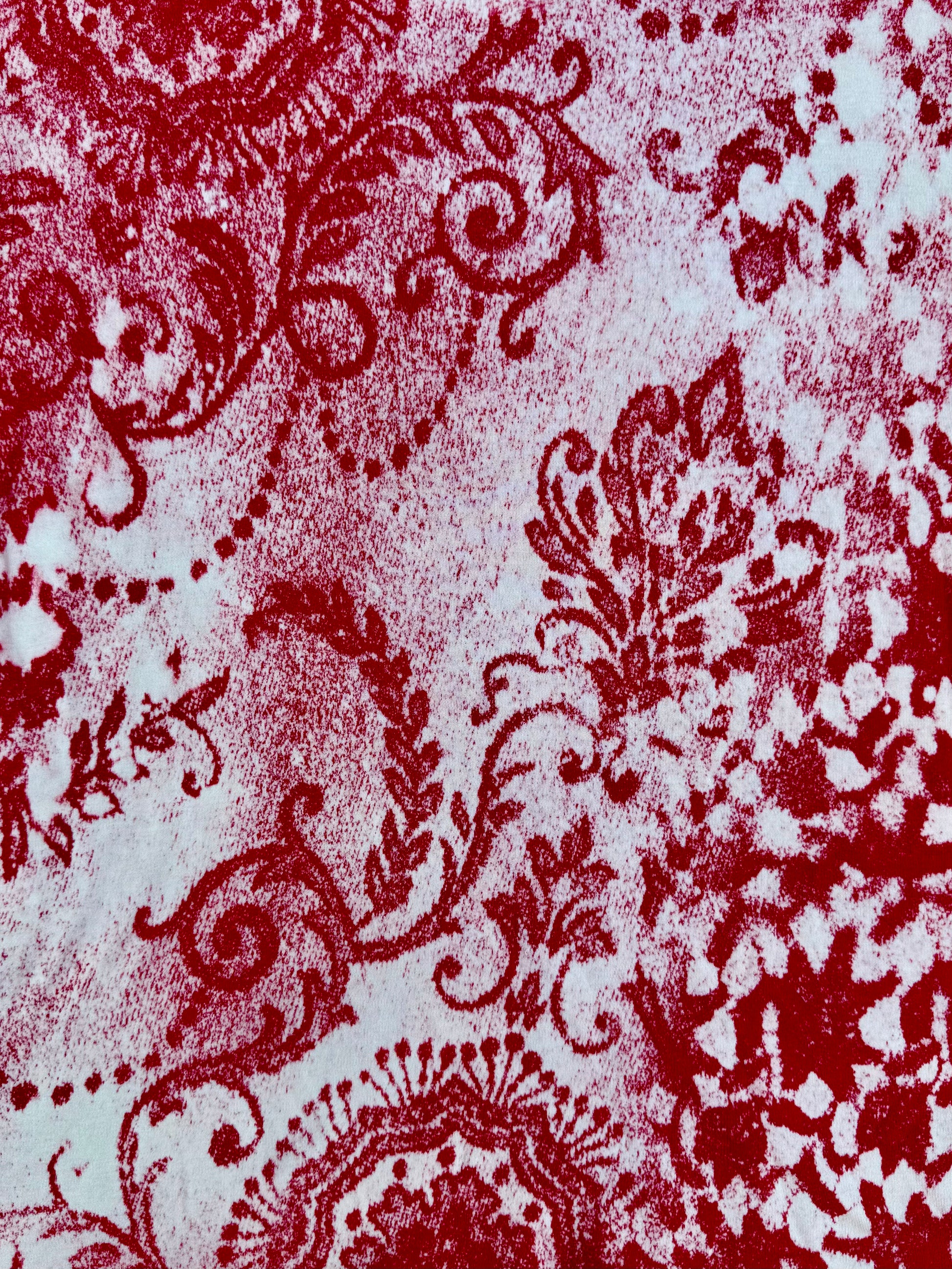 Sewn onto t-shirt bleach dyed with vintage lace.