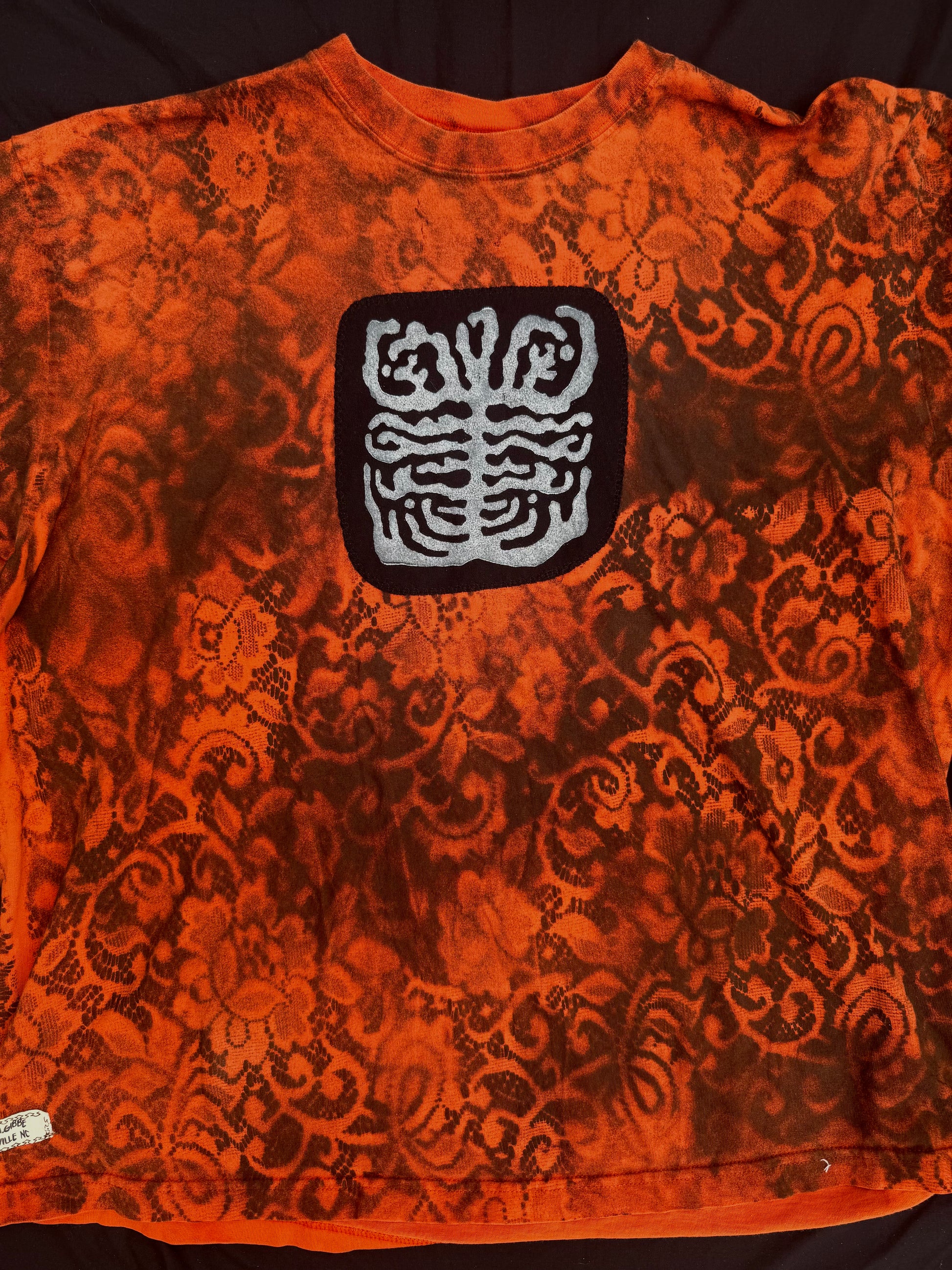 T shirt spray painted with vintage lace.