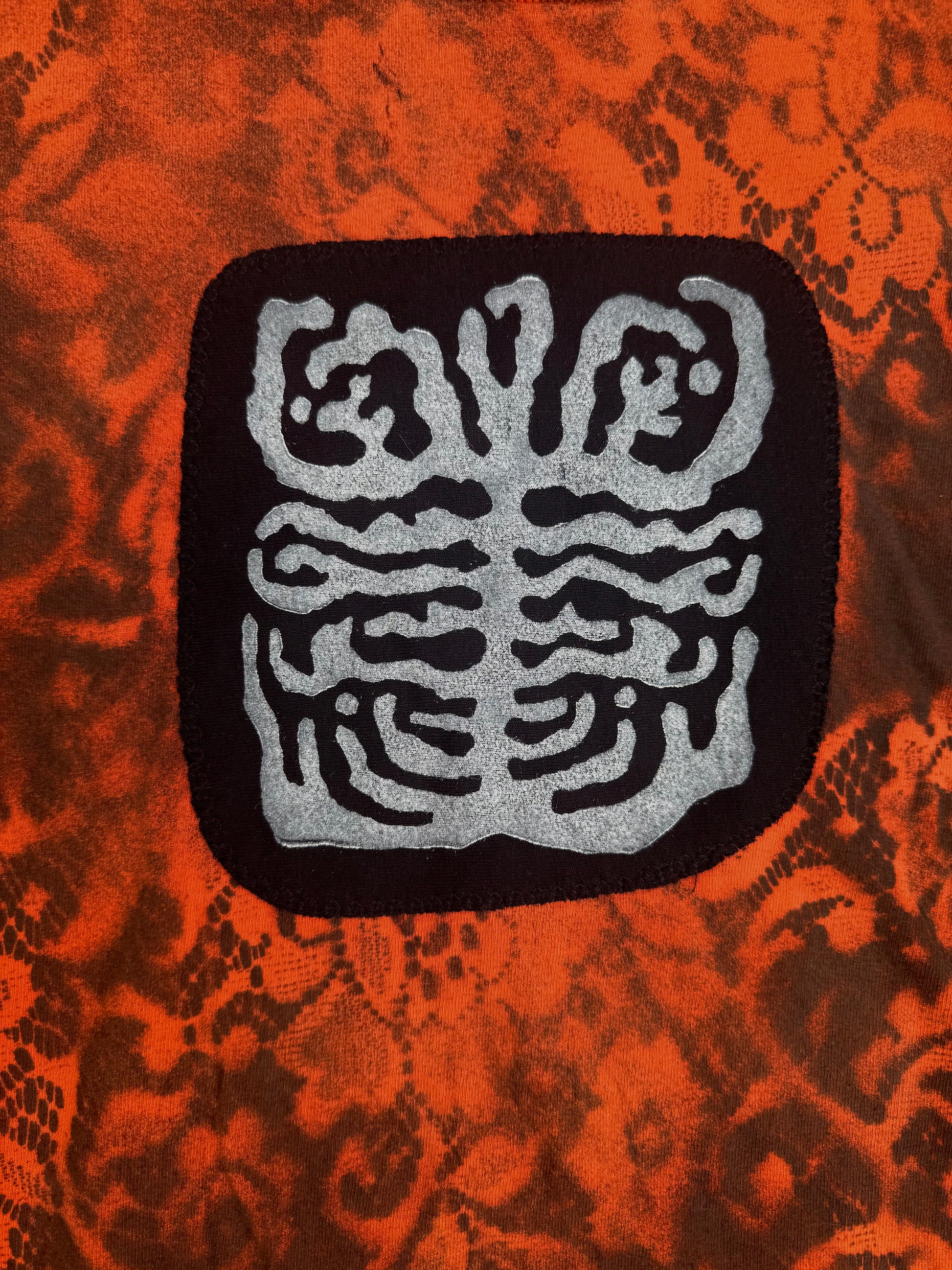 Shape patch lace spray painted long sleeve t shirt