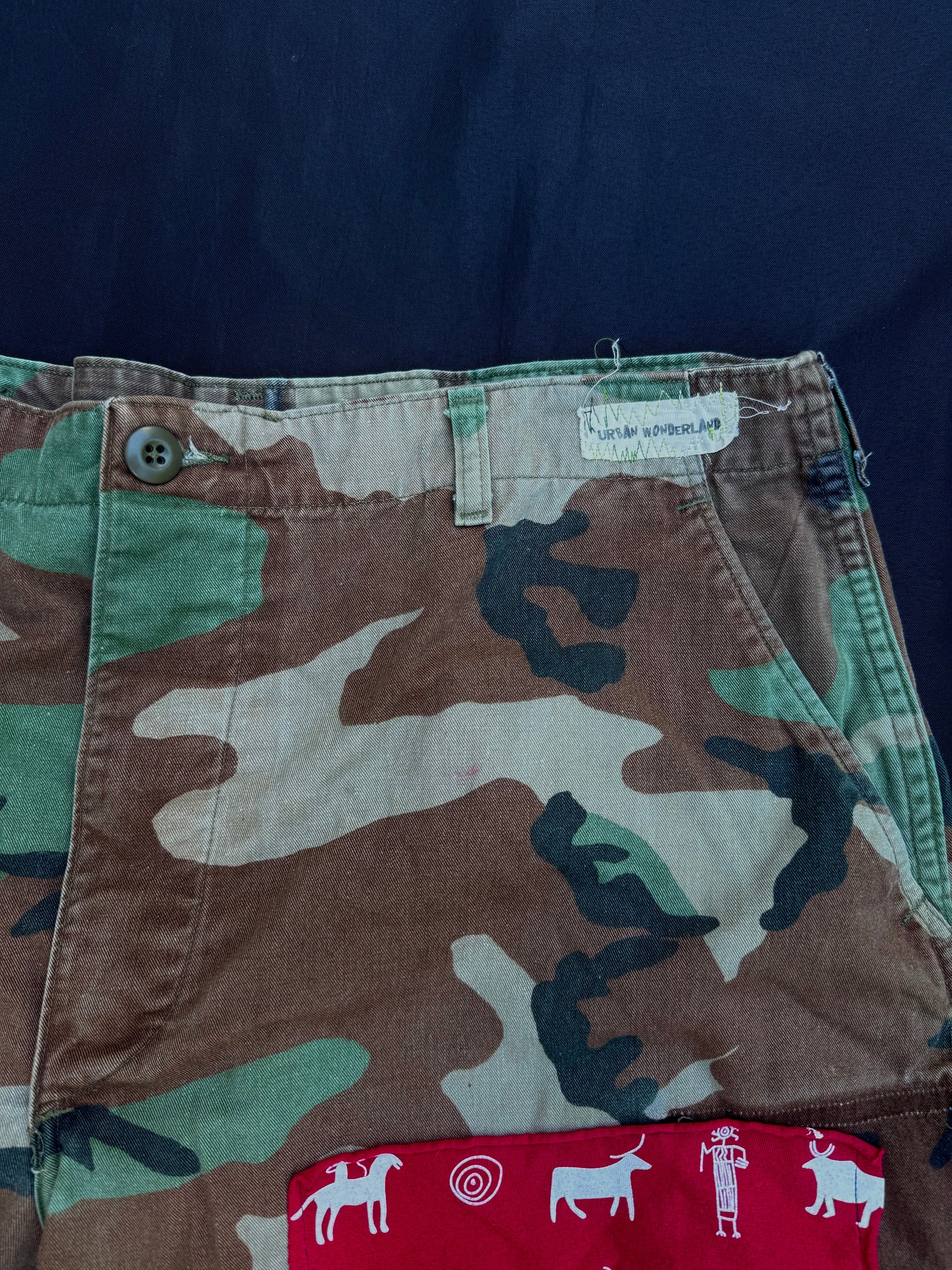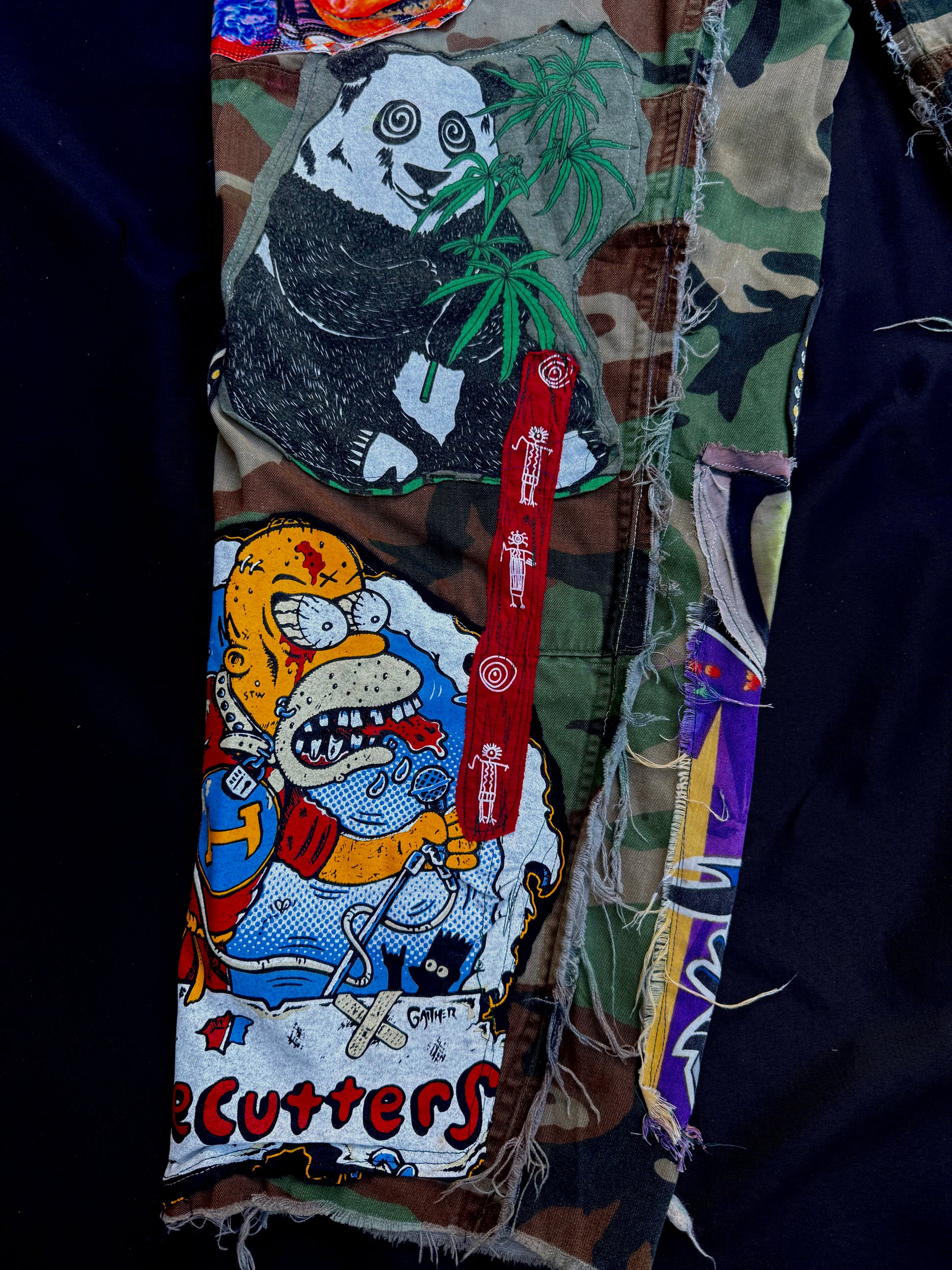 Upcycled camo jeans collaged by Bam.