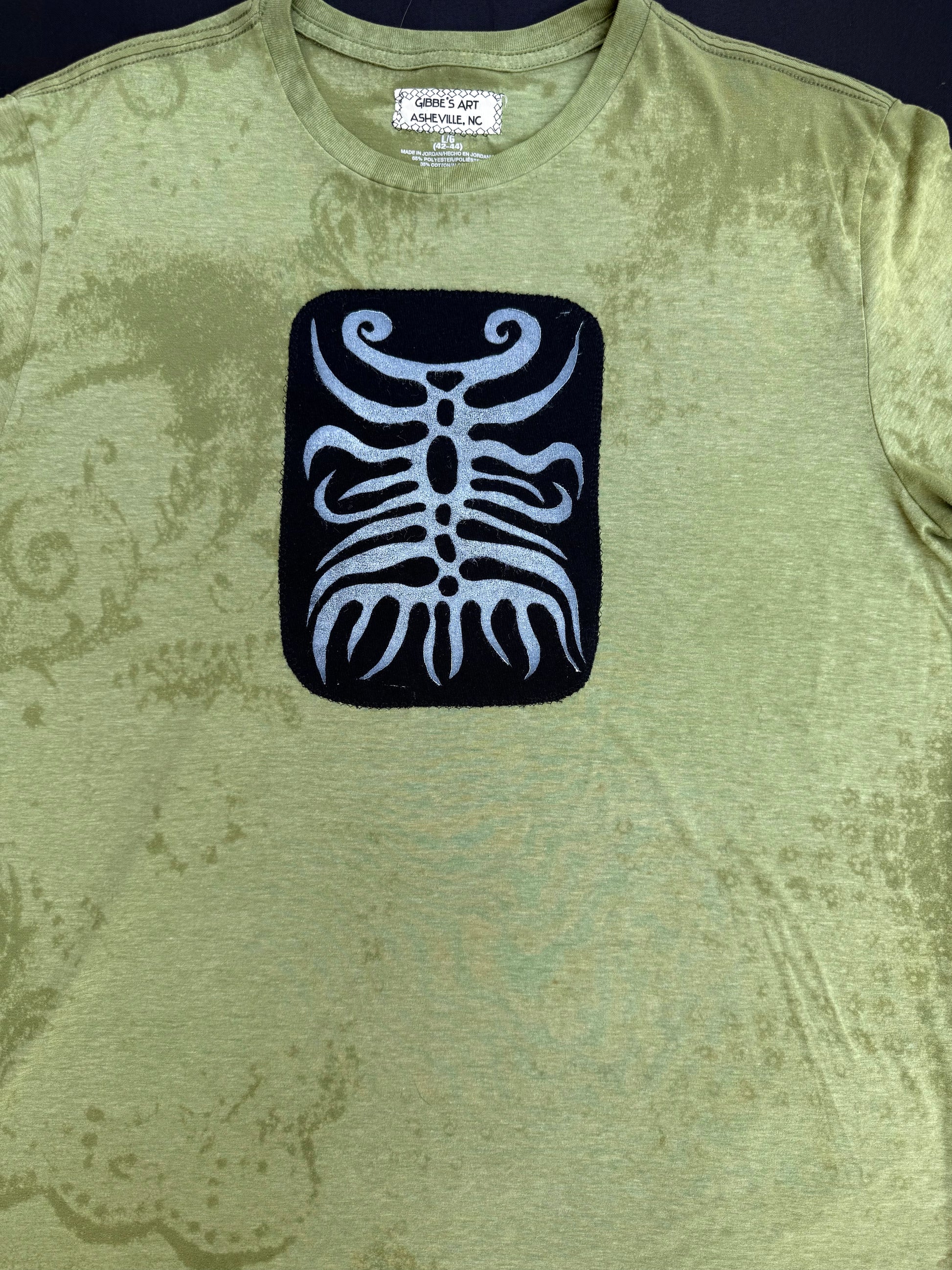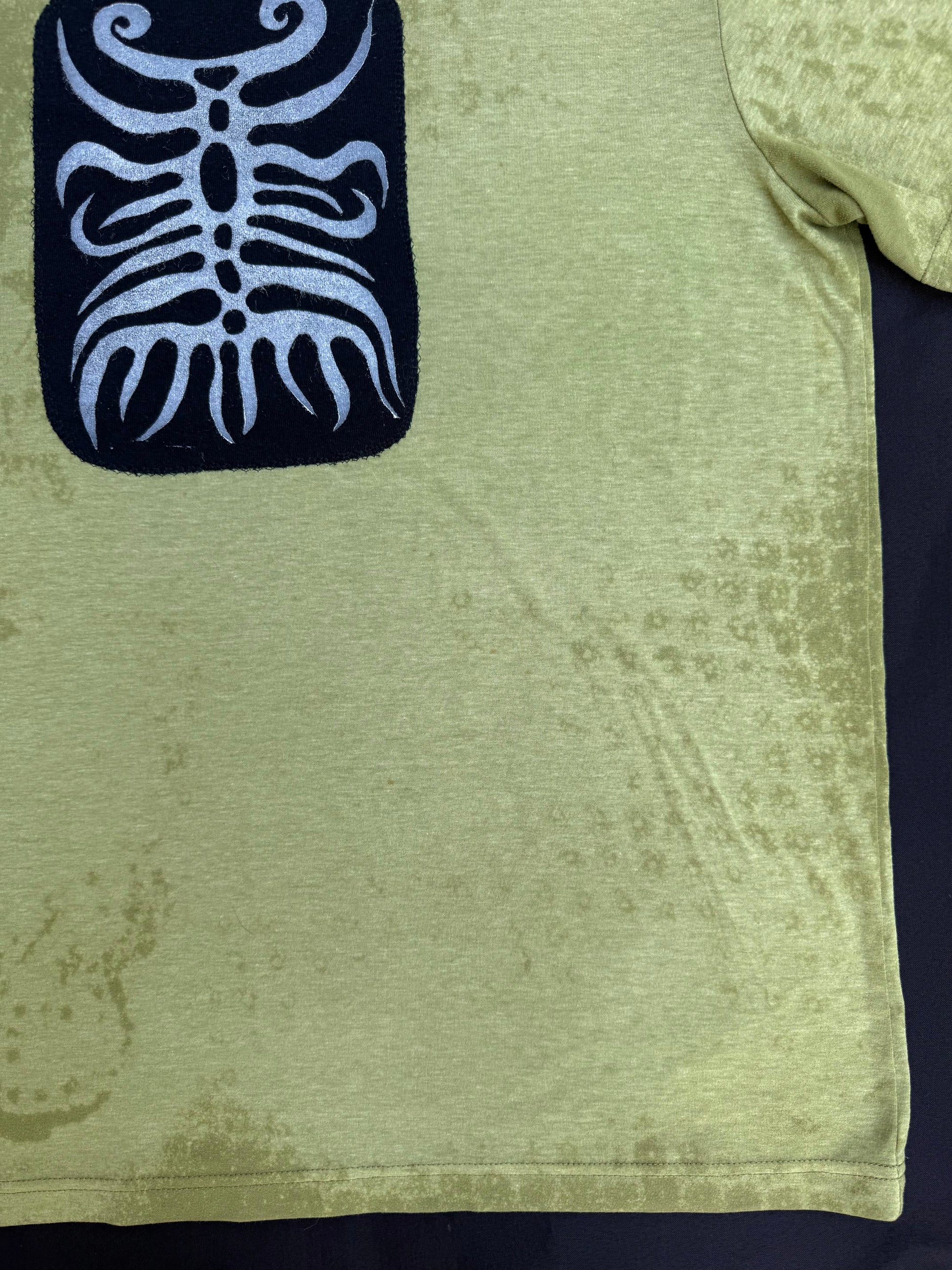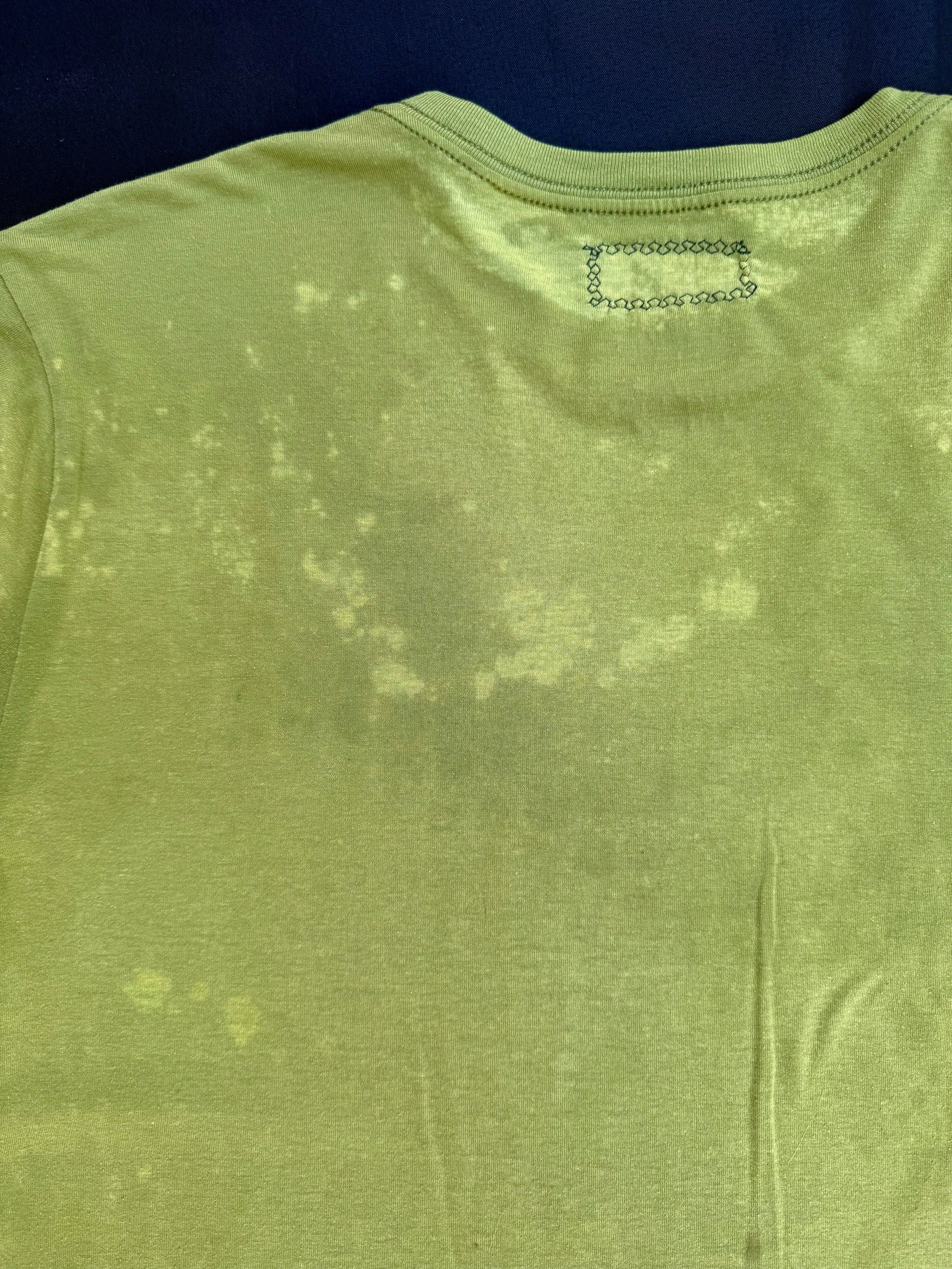 Sewn onto t-shirt bleach dyed with vintage lace.