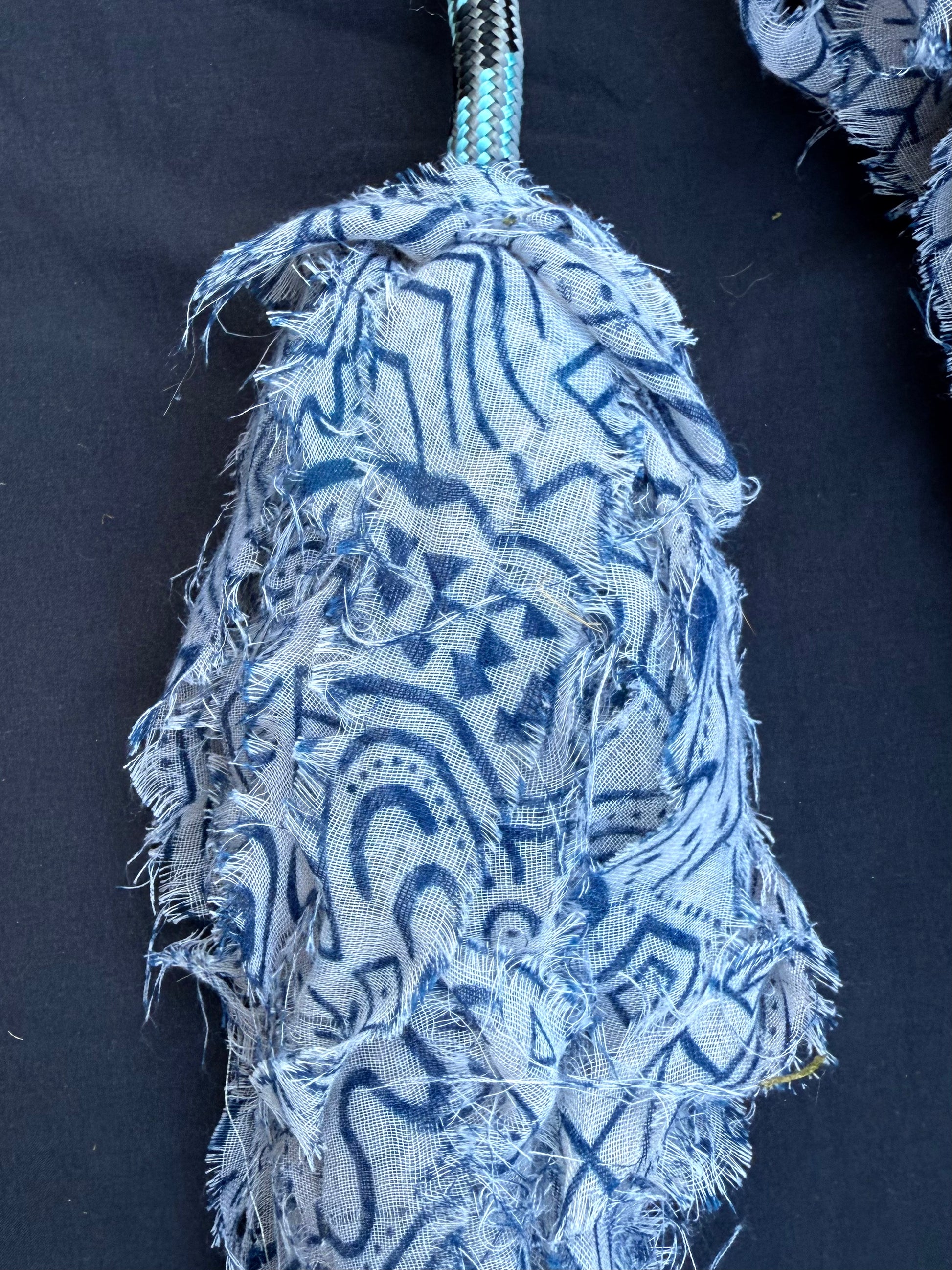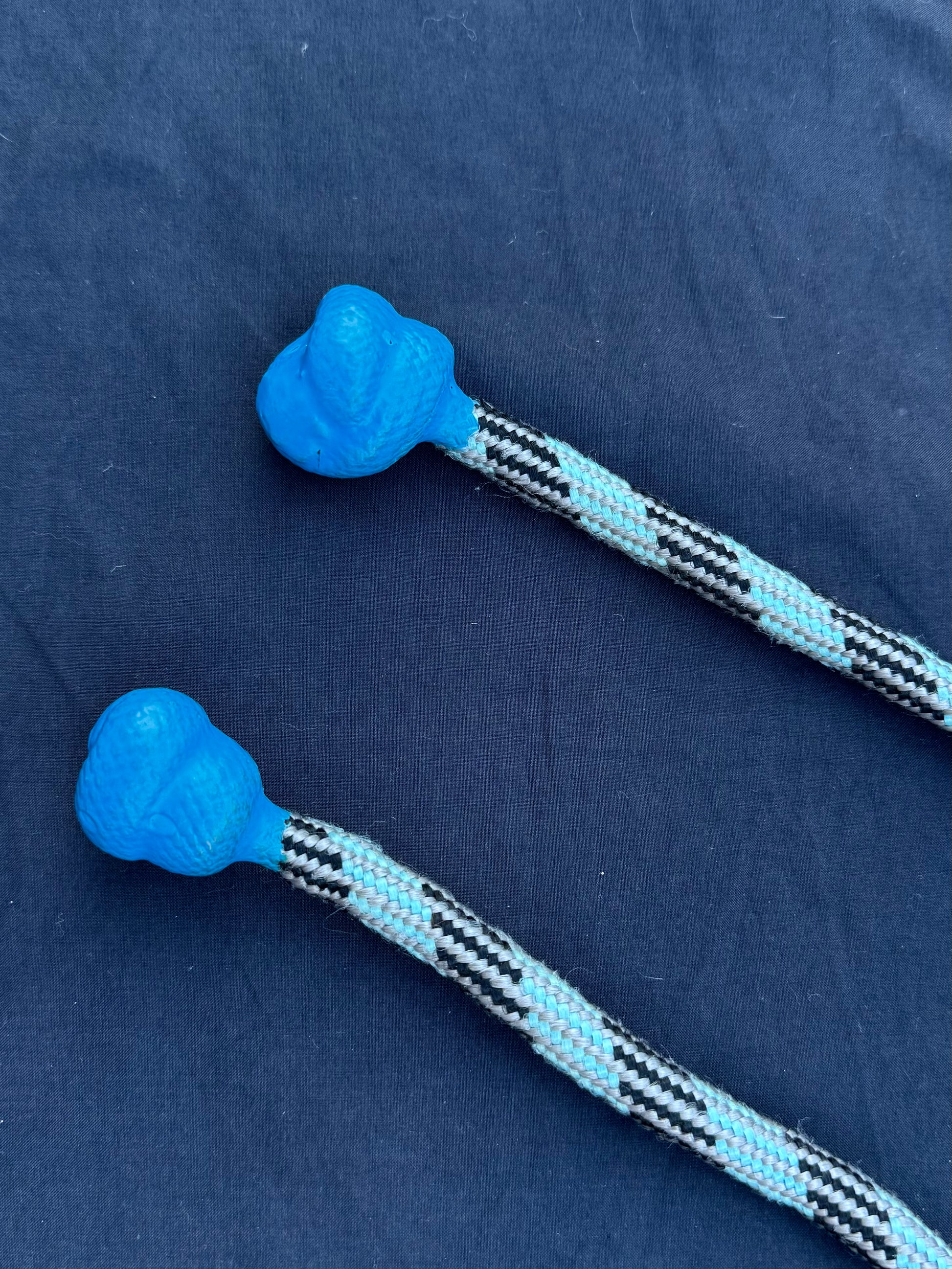 Poi made from thrifted fabric. Filled with copper chunks for weight.